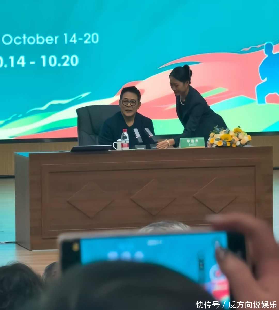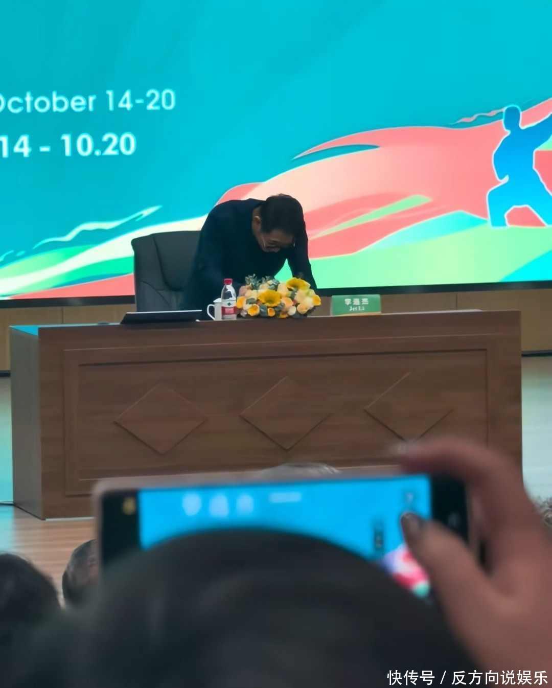 那天李连杰上台讲话,刚站定,就看见面前摆着一束黄菊花,他没出声,慢慢弯下腰,轻轻把花挪到桌子边上,动作很慢,可谁都看清楚了。